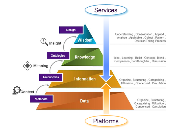 The current explosion of interest in ‘Big data’ is now driven by the inclusion of much more unstructured data for analyses. According to analyst consensus, 80 percent of data falls into the ‘unstructured’ category, which is fundamentally different from ‘structured’ data. Unstructured content is largely created by humans: inconsistent, emotional, careless, opinionated, lazy, driven, over-worked, always unique, humans. In a 1998 Reuter’s report, information overload is seen as a problem by 42% of respondents. In the United Kingdom 47% stated that information overload damaged their relationships and 42% thought it reduced their job satisfaction. The principal reason is due to the amount of data and the plethora of isolated storage structures/methods used in organising it. Appreciating the origins of data and its hierarchical pyramid of future needs, as part of a Digital-First organisation, is the first step into producing actionable insights through applying logical structures in the form of 'Ontologies', ‘Taxonomies’, direct keyword ‘Tags’ or applying 'Semantic data' that exposes business value.